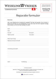 Download het reparatie-formulier, vul deze in en stuur mee.